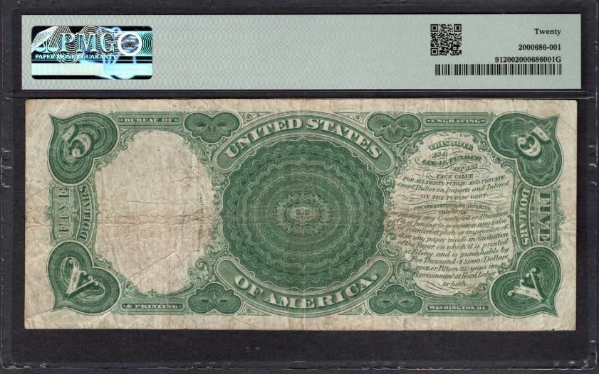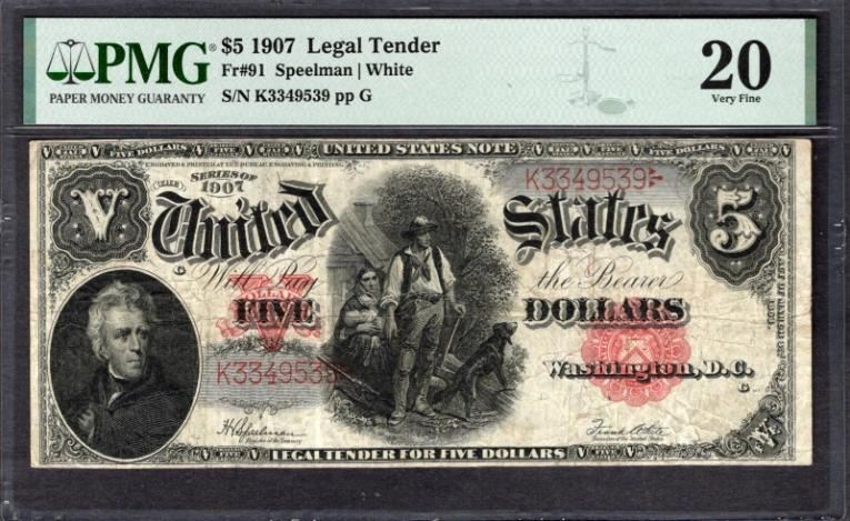 One 1907 $5 Legal Tender Note PMG 20.