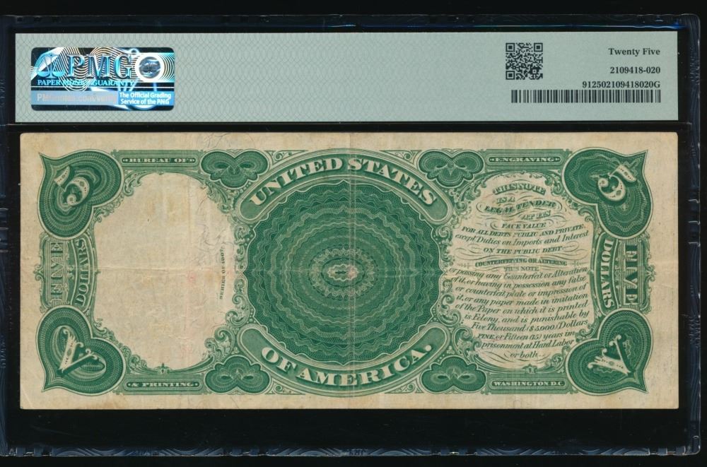 One 1907 $5 Legal Tender Note PMG 25.