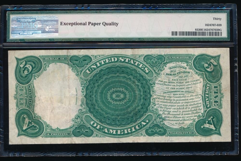 One 1907 $5 Legal Tender Note PMG 30EPQ.