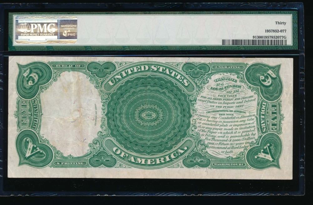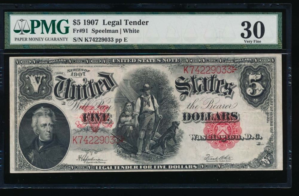 One 1907 $5 Legal Tender Note PMG 30.