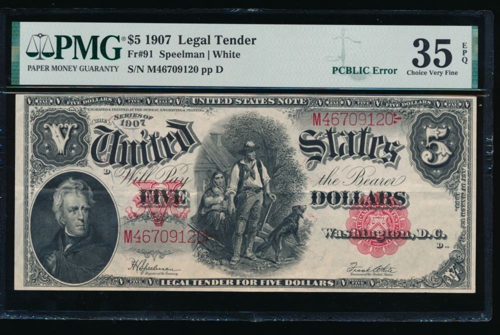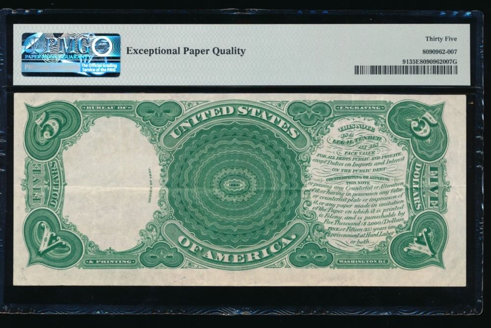 One 1907 $5 Legal Tender Note PMG 35EPQ.
