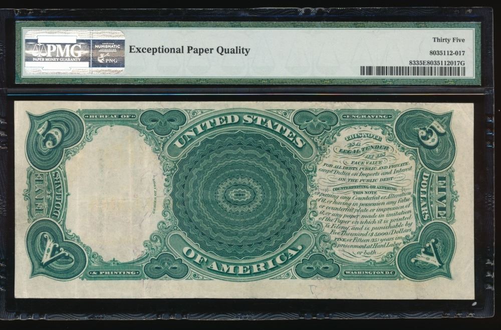 One 1907 $5 Legal Tender Note PMG 35EPQ.