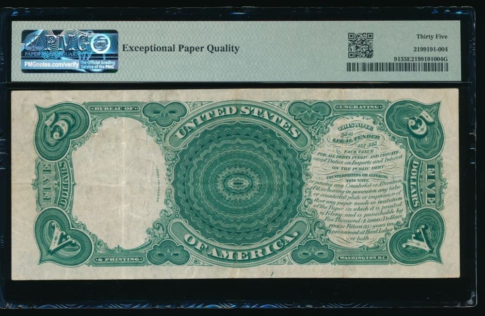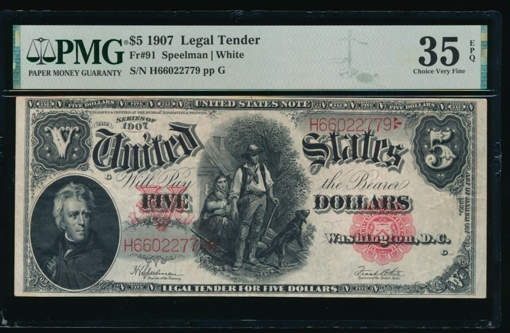 One 1907 $5 Legal Tender Note PMG 35EPQ.