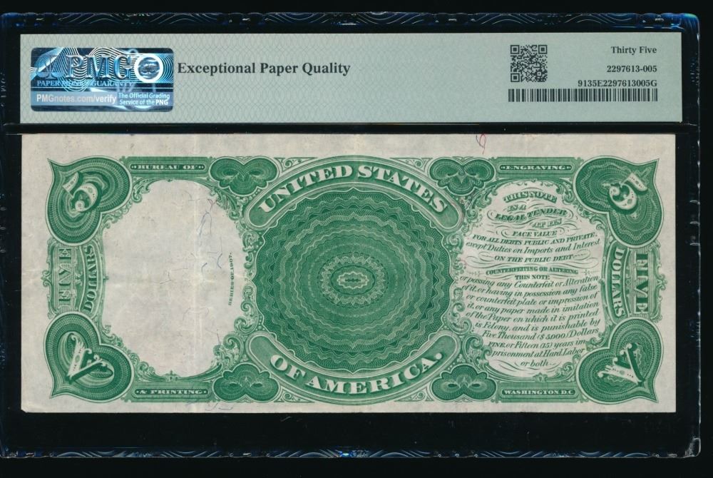 One 1907 $5 Legal Tender Note PMG 35EPQ.