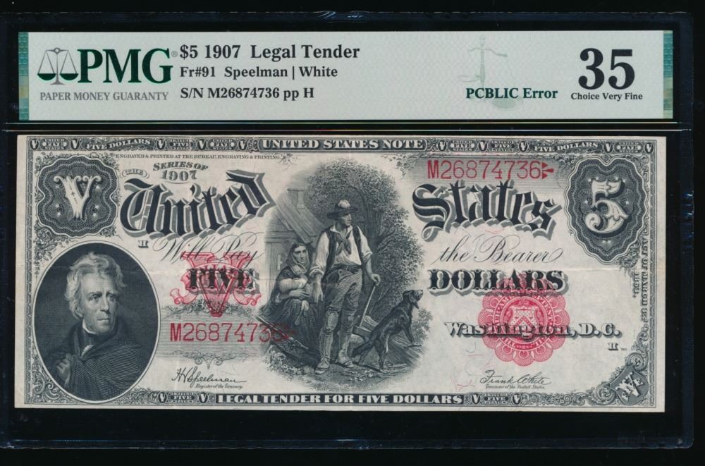 One 1907 $5 Legal Tender Note PMG 35.