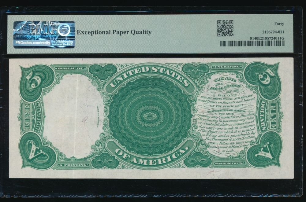 One 1907 $5 Legal Tender Note PMG 40EPQ.
