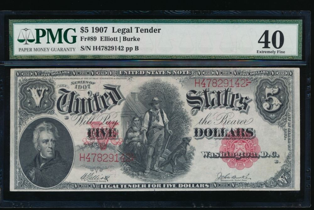 One 1907 $5 Legal Tender Note PMG 40.