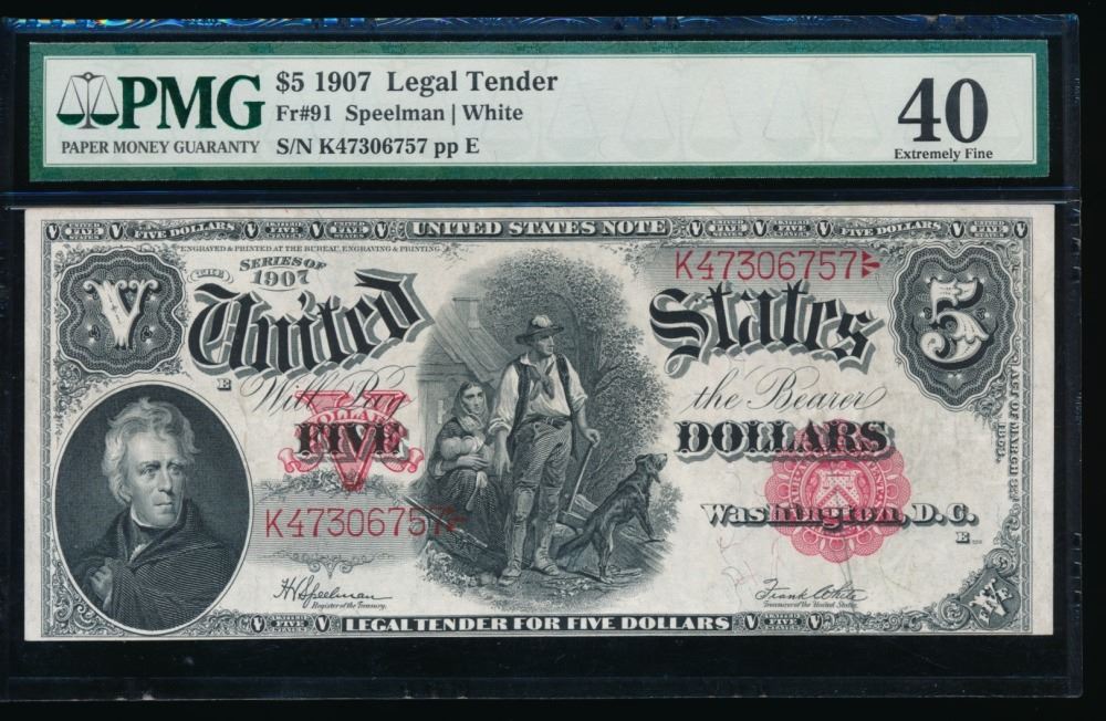 One 1907 $5 Legal Tender Note PMG 40.