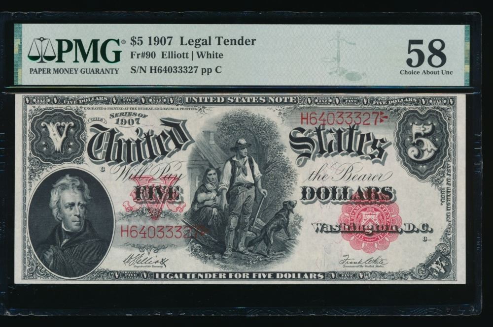 One 1907 $5 Legal Tender Note PMG 58.