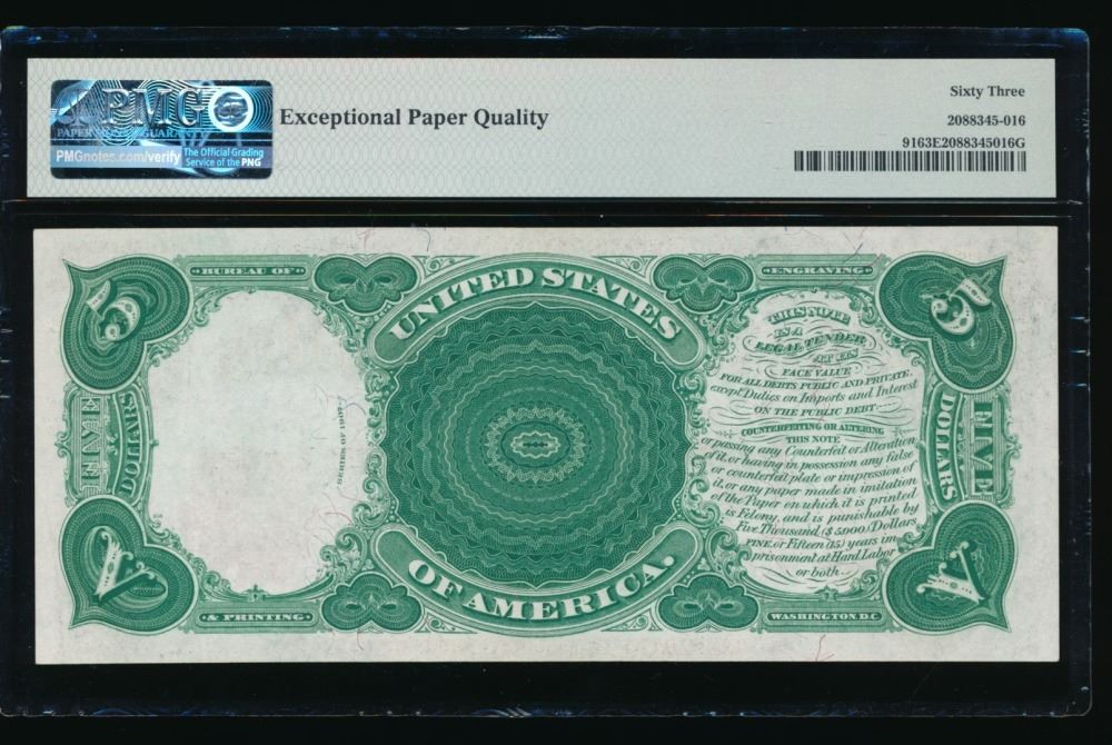 One 1907 $5 Legal Tender Note PMG 63EPQ.