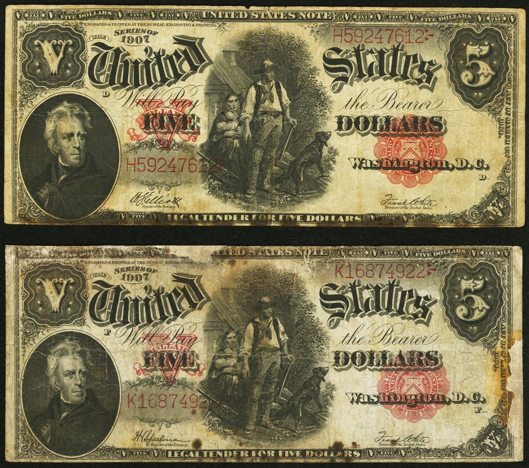 Lot of (2) 1907 $5 Legal Tender Notes.
