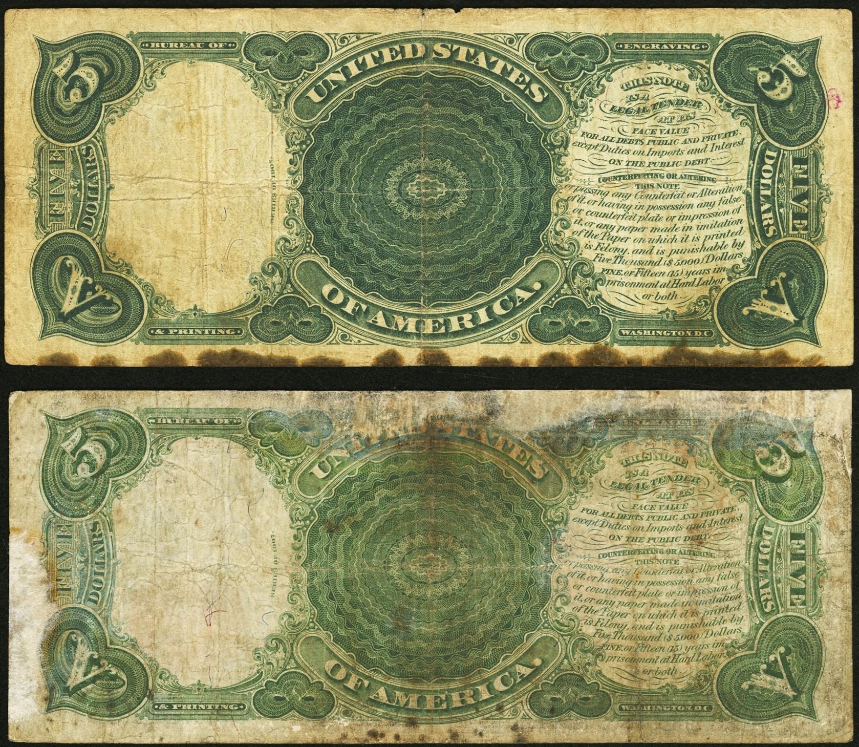 Lot of (2) 1907 $5 Legal Tender Notes.