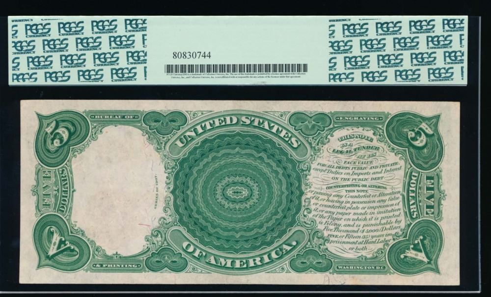 One 1907 $5 Legal Tender PCBLIC Error Star Note PCGS 55.