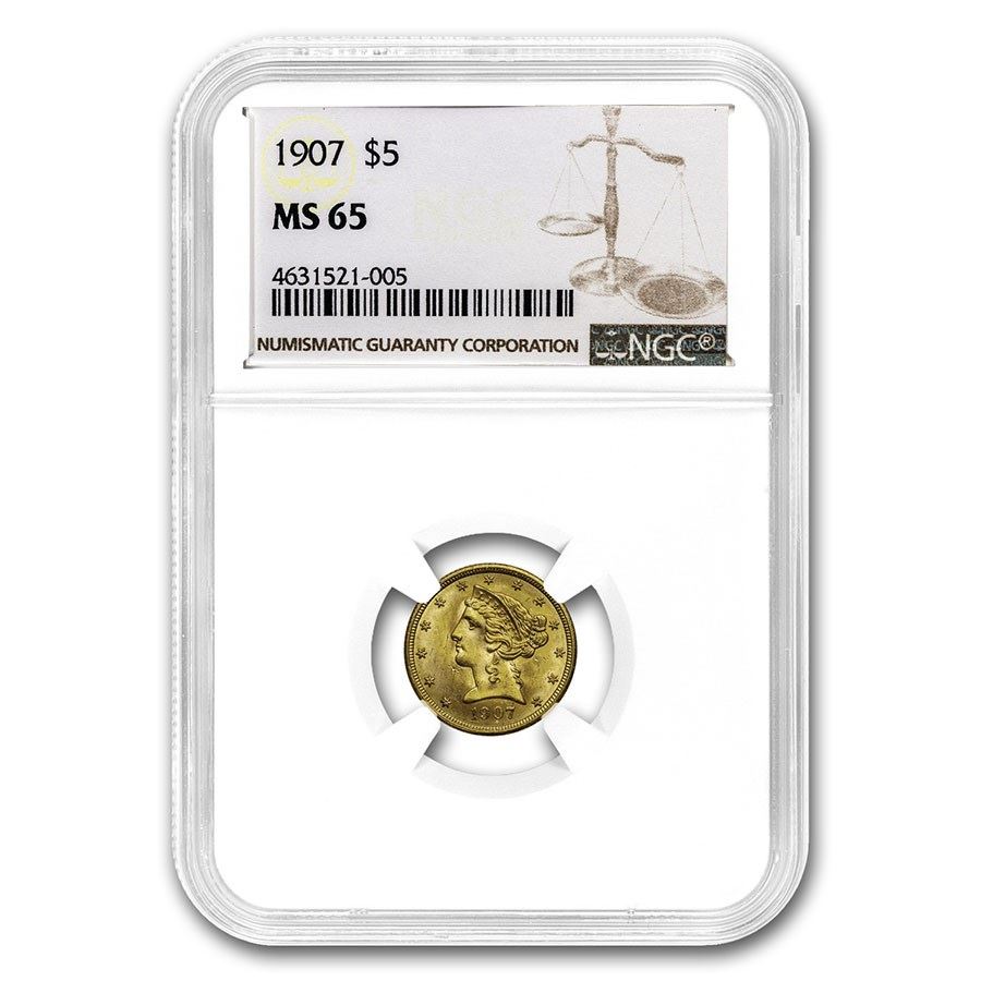 1907 $5 Liberty Gold Half Eagle MS-65 NGC