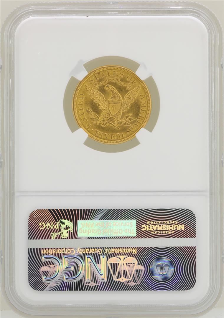 One 1907 $5 Liberty Head Half Eagle Gold Coin NGC MS62. NGC Certified.