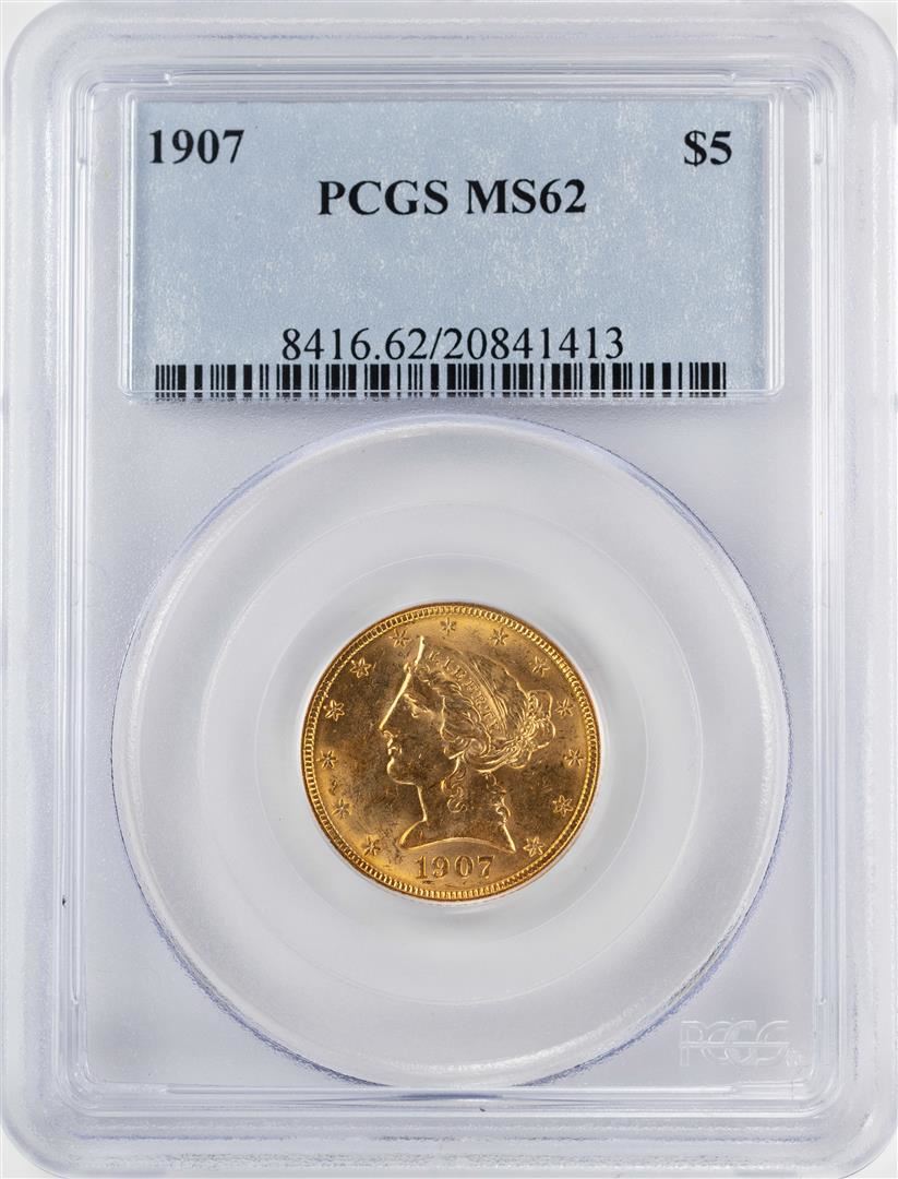 One 1907 $5 Liberty Head Half Eagle Gold Coin PCGS MS62. PCGS Graded.