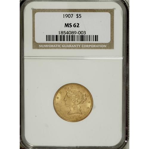 1907 $5 MS62 NGC. NGC Census: (2174/2086). PCGS Po
