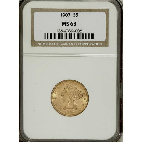 1907 $5 MS63 NGC. NGC Census: (1306/780). PCGS Pop