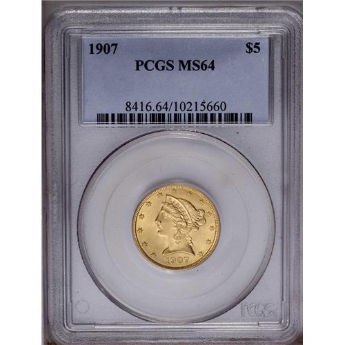 1907 $5 MS64 PCGS. Well struck and highly lustrous, wi 1907[$5] MS64 PCGS.