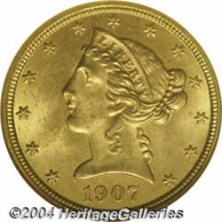 <table><tr><td><table><tr><td>1907 $5 MS65 NGC. The originality of this coin's surfaces is beyond question as each side has deep reddish-golden and lilac coloration. Well, but not fully struck, there are no distracting marks on either side. Population: 73 in 65, 28 finer (3/04). <BR><BR><B>Important notice:</B> Heritage usually auctions material at the rate of 200-250 lots per hour. On some occasions eBay Live bid software or the Internet may not be able to keep up with the pace of the auction. We recommend placing a realistic absentee bid now as insurance to avoid disappointment. Occasionally the auctioneer may eliminate or reject an eBay Live bid, and the auctioneer may also reopen a lot after the close of the eBay live bidding (usually because we missed an audience bid), and may reject your bid even if it shows you as the winning bidder. By bidding via eBay Live, you agree that Heritage may award the lot to another bidder at its sole discretion under the circumstances described above or any other reasonable circumstances. Since eBay bids are not shown to us until we open the lot on the floor, we treat those bids just like floor bids. In most cases the floor responds before the eBay bid is presented to us, due to Internet lag time, so for consistency we have made it a policy that floor bids are always considered first over tie eBay live bids. Also please note that all Heritage lots purchased through eBay Live carry a 20% Buyer's Premium. Please make sure you read the Terms and Conditions before you bid. <BR><BR><B>IMPORTANT ANNOUNCEMENT ABOUT RESERVES:</B> Heritage now divulges all reserves on its web site 7 days before every auction. If you want to know whether the reserve on this lot has been met, and if not, what the reserve amount is, please visit this lot page on the HeritageCoin.com web site, or email: bid@HeritageGalleries.com </span></font></td></tr></table></td></tr></table>