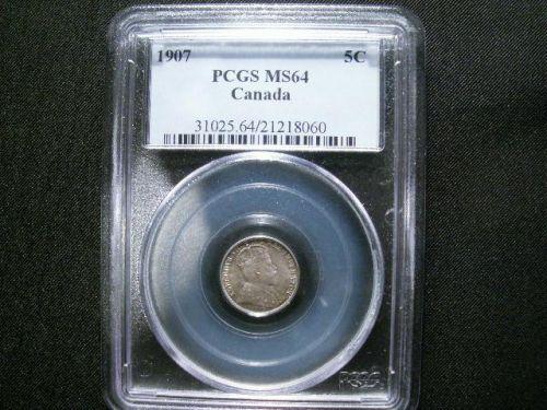 1907 5¢ PCGS MS64PQ. Nicely toned.