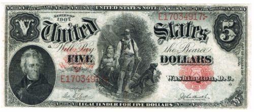 1907 $5 UNITED STATES LEGAL TENDER NOTE "WOODCHOPPER"