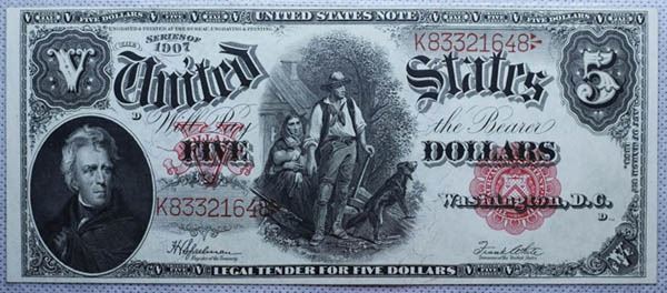 1907, 5 United States Note, PCBLIC error. S/N K83321648 pp D. Speelman / White. Exceptional paper quality. PMG graded Choice About Uncirculated 58 EPQ.