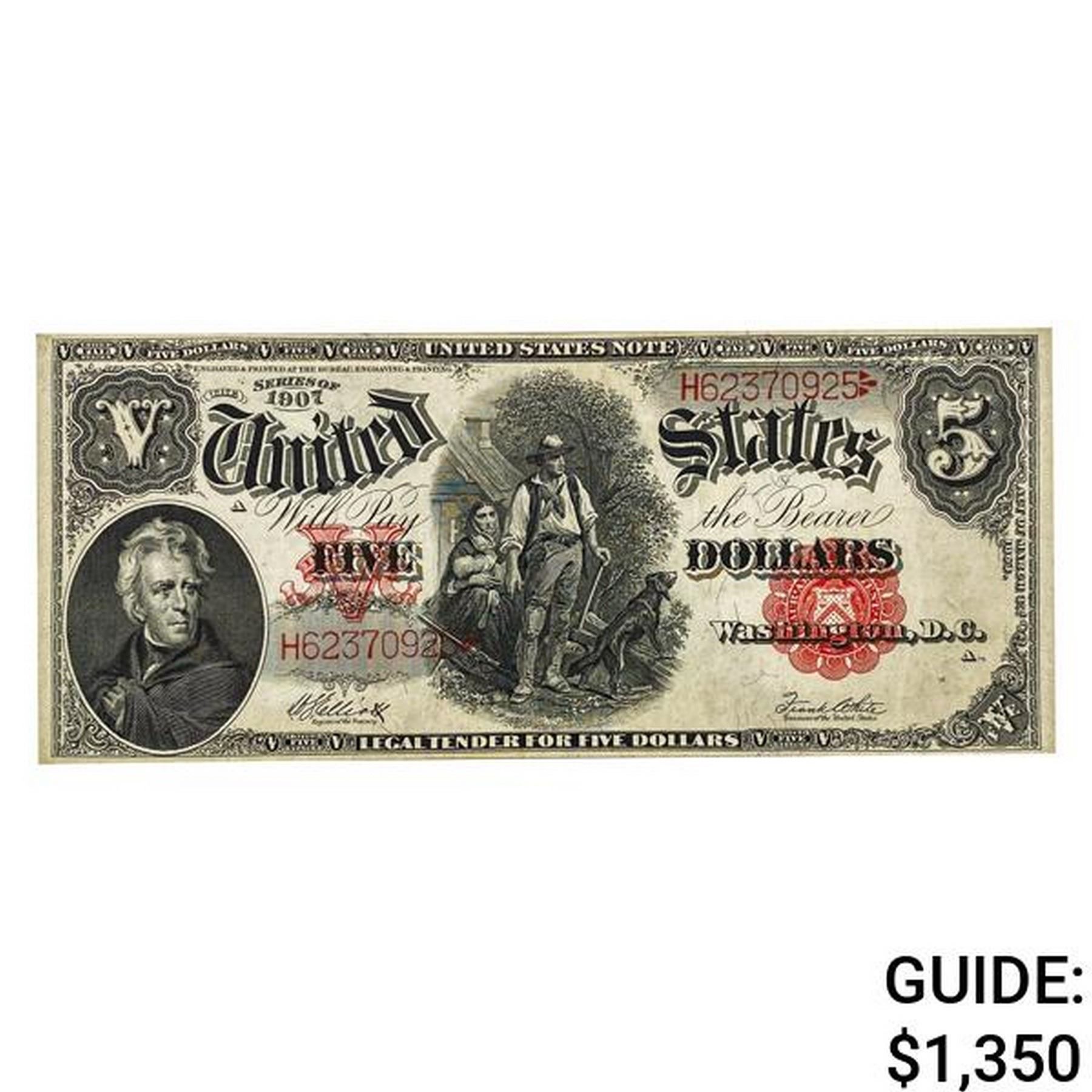 1907 $5 "WOODCHOPPER" LEGAL TENDER NOTE AU