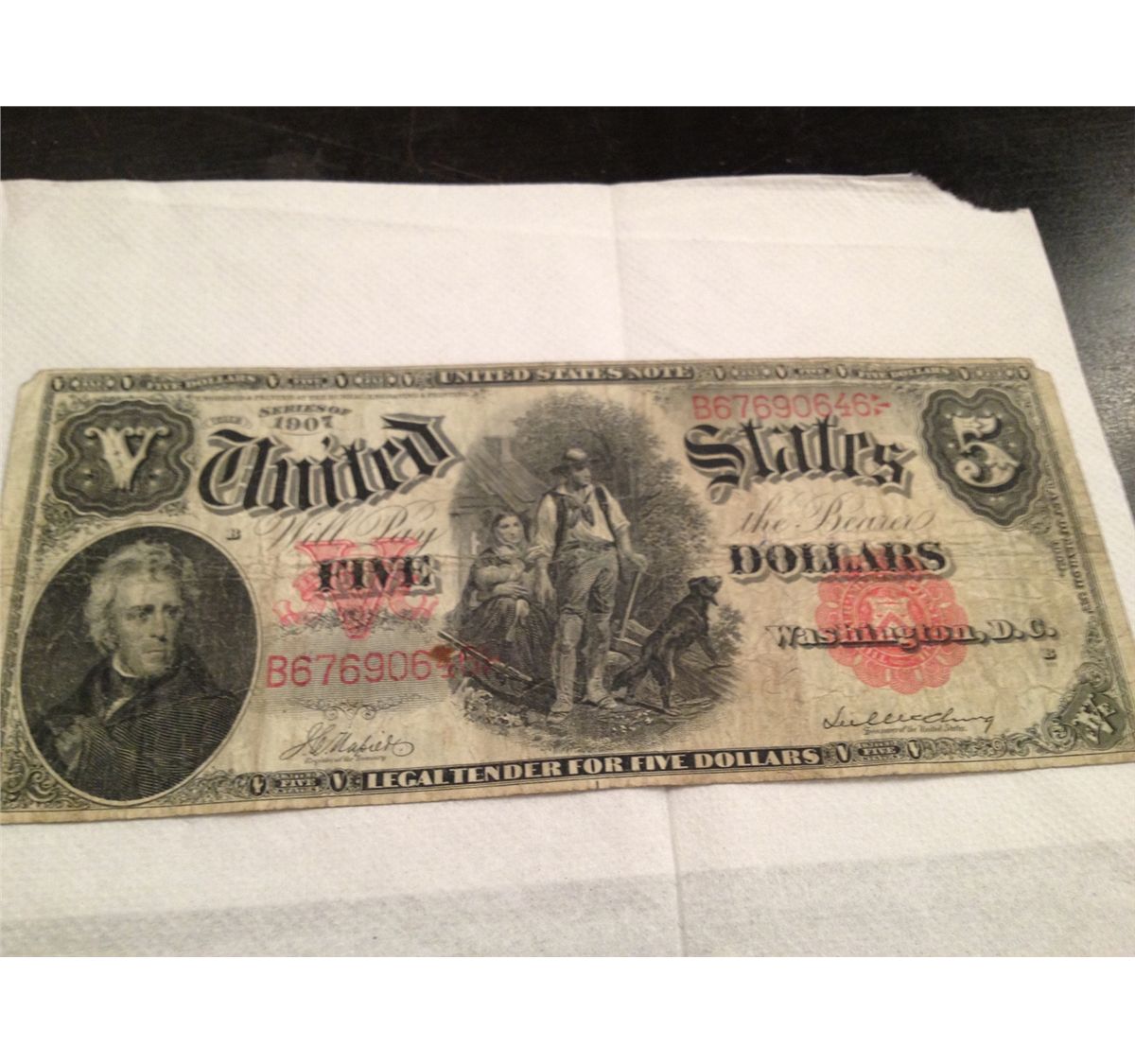 1907 $5 "WOODCHOPPER" LEGAL TENDER NOTE