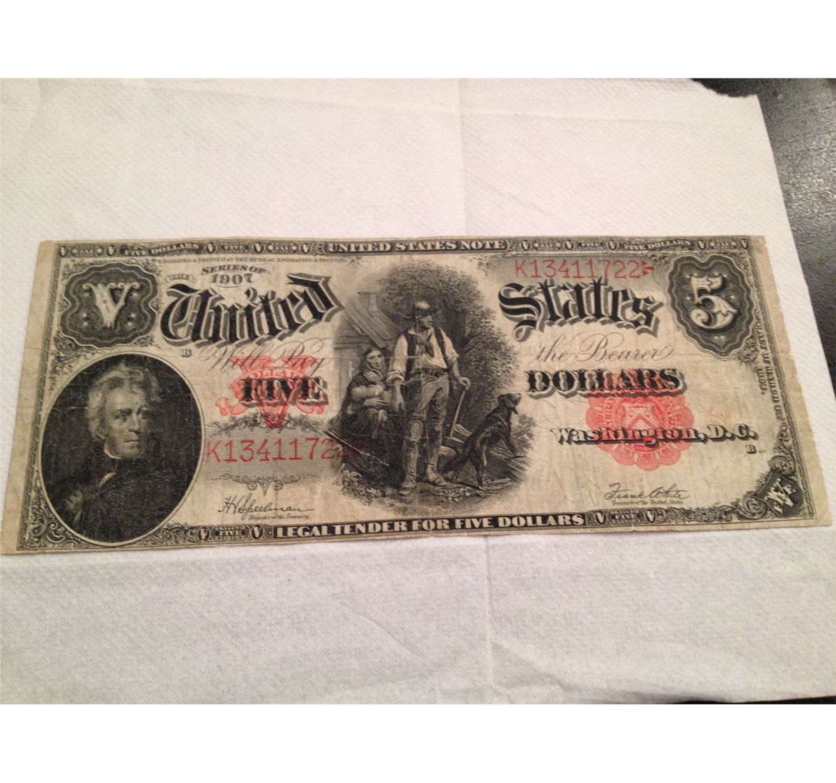 1907 $5 "WOODCHOPPER" LEGAL TENDER