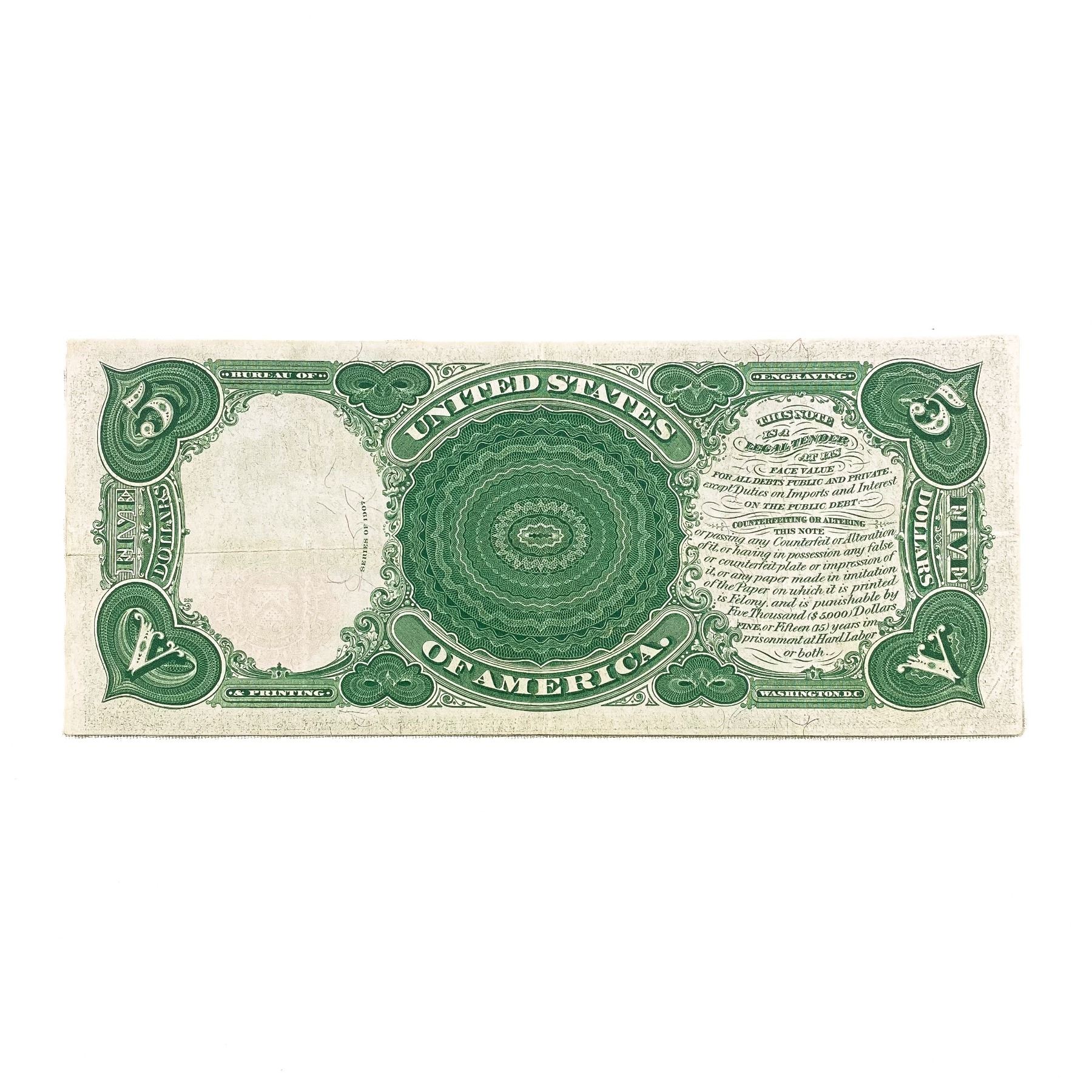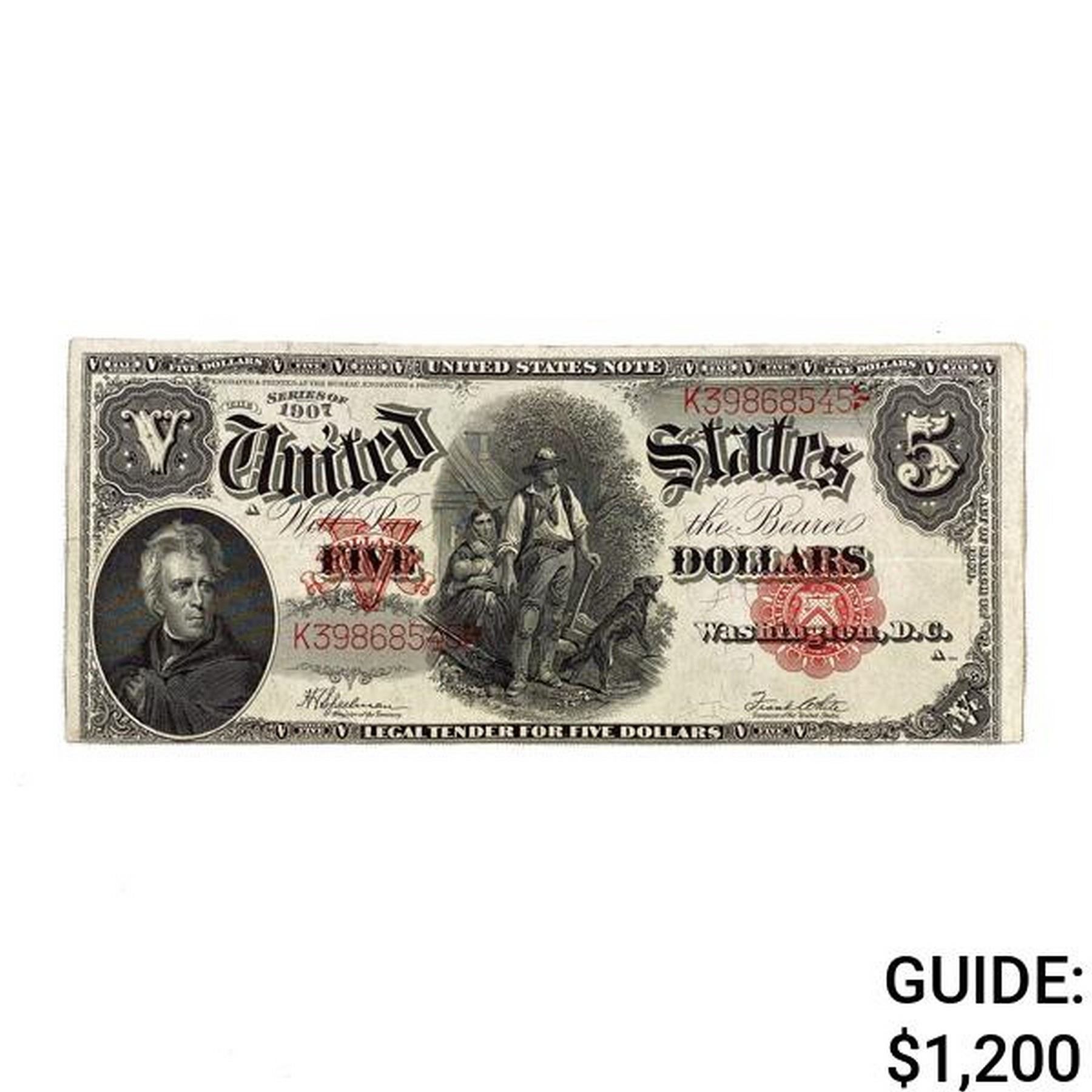 1907 $5 WOODCHOPPER LT UNITED STATES NOTE AU