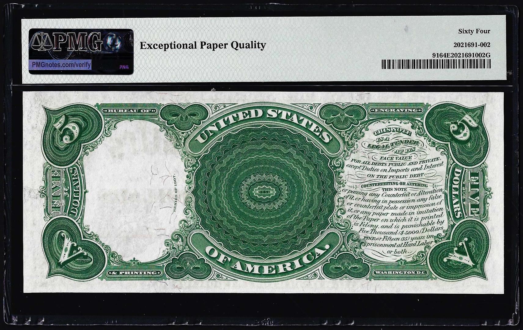 One 1907 $5 Woodchopper Legal Tender Note Fr.91 PMG Choice Uncirculated 64EPQ. PMG Certified.