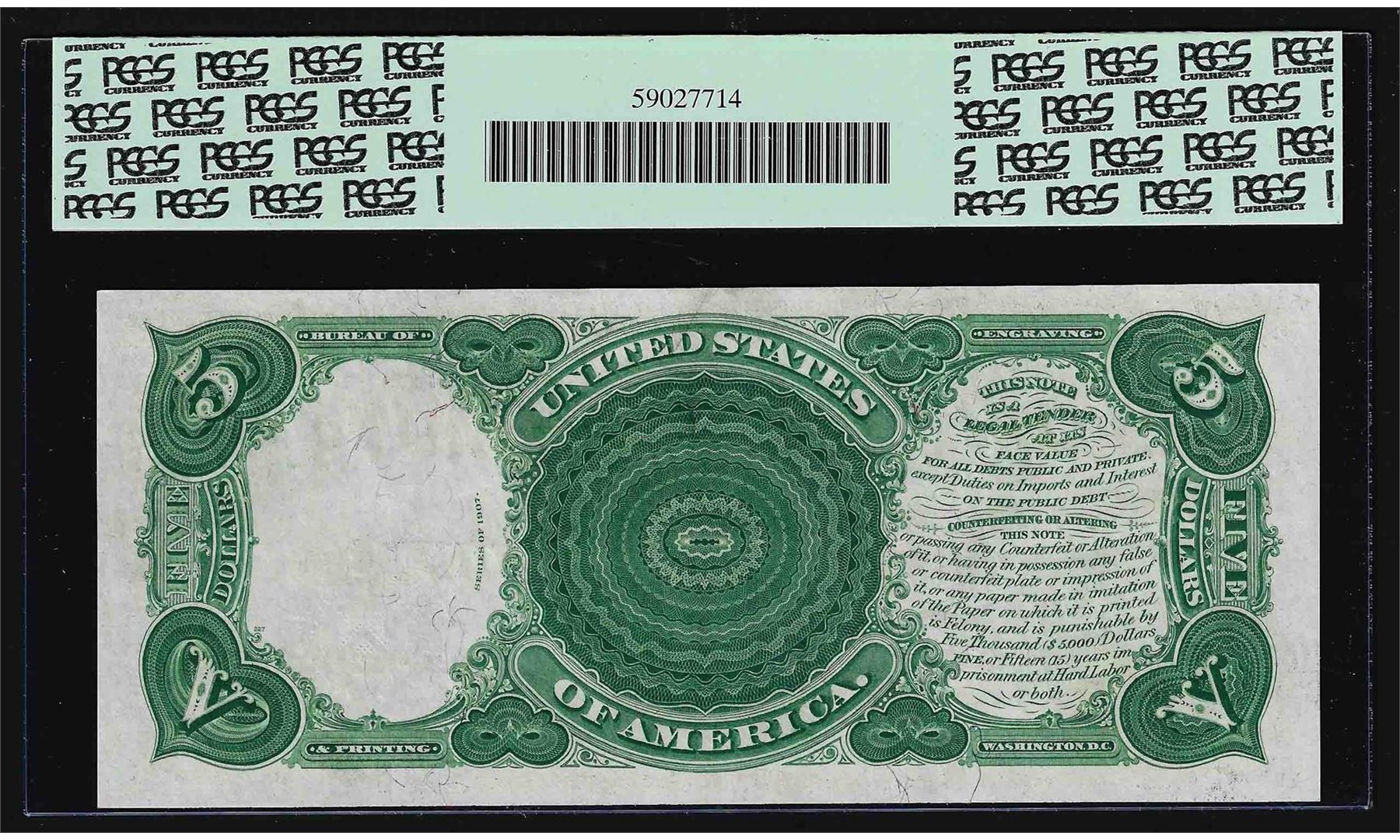 One 1907 $5 Woodchopper Legal Tender Note PCGS Choice About New 58PPQ. PCGS Graded.