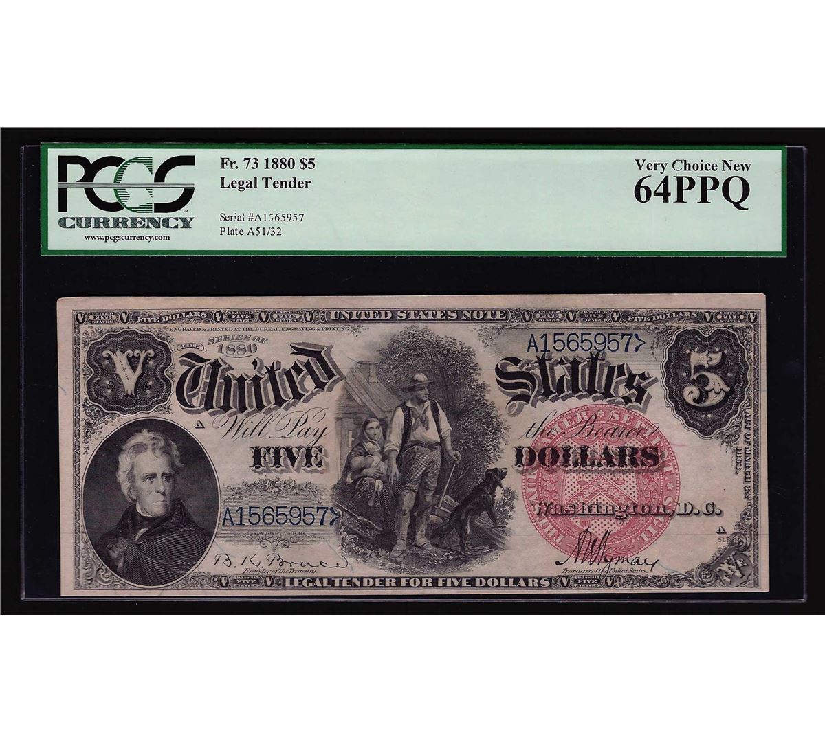 One 1907 $5 Woodchopper Legal Tender Note PCGS Very Choice New 64PPQ. PCGS Graded.