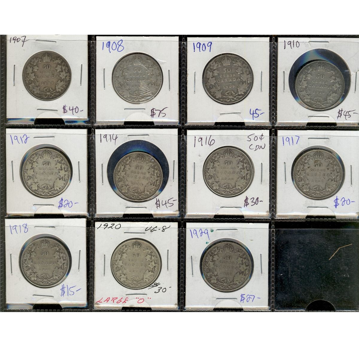 1907 50¢, 1908, 1909, 1910, 1912, 1914, 1916, 1917, 1918, 1920 & 1929. Lot of 11 pcs VG or better.
