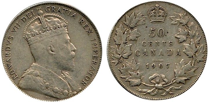 1907 50¢ CCCS VF30, nice with some remaining lustre.