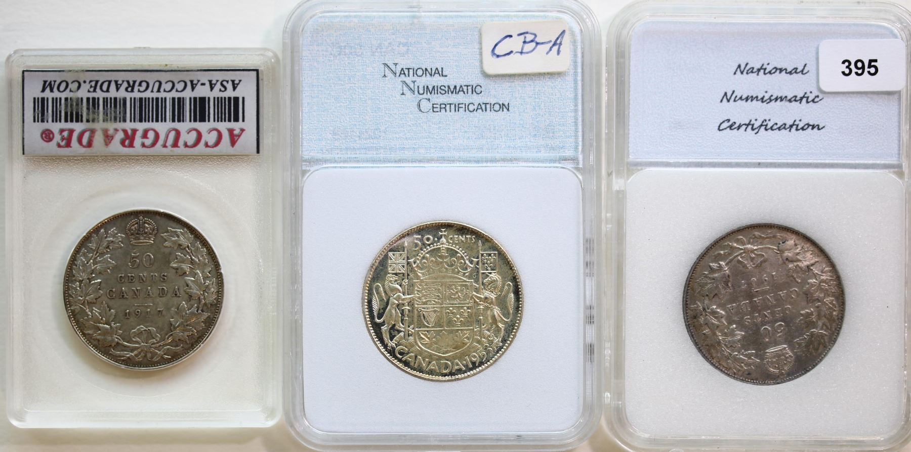 This is an Internet, Live Internet, email, phone and mail auction sale conducted. Information provided by The Canadian Numismatic Company on our web site and in this catalog is strictly AS IS and/or strictly an opinion. No warranty given. Bids are per lot. No lots will be broken. Auction sales are not approval sales. All lots shall be sold to the highest bidder as determined by the auctioneer. If any dispute arises during the sale, the auctioneer has the right to reopen the lot and put it up for sale again. The auctioneer’s decision will be final. In the case of identical (tied) bids during our Live Auctions, the earliest received bid shall take priority. In the case of a tie bid during our Sales, between a mail/fax bid and an Internet bid, the Internet bid will take precedence and obtain the lot. PLEASE CONTACT US IF YOU REQUIRE FURTHER EXPLANATION.