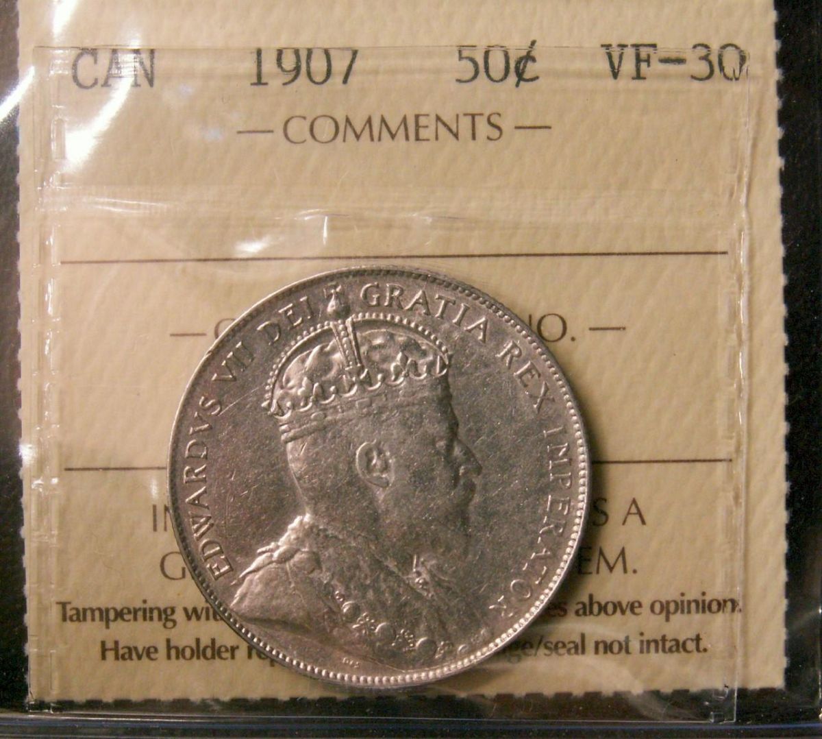 1907 50¢ ICCS VF30.