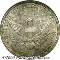 <B>1907 50C PR66 NGC.</B></I> One of only 575 proof struck in this year, this piece has the expected, deeply reflective fields on each side. The striking definition is absolutely full on the obverse, but the reverse is just a tad soft on the eagle's right (facing) wing. A few light obverse hairlines are well concealed by the rich golden-rose toning that is seen over each side, toning that turns to a rich sea-green around the obverse periphery. Population: 20 in 66, 5 finer (2/05).
