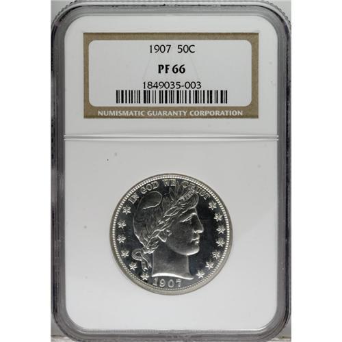 1907 50C PR66 NGC. Virtually brilliant, although the b