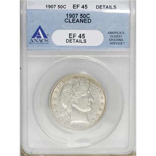 <B>1907 50C --Cleaned--ANACS. XF45 Details.</B></I> NGC Census: (2/202). PCGS Population (4/282). Mintage: 2,598,575. Numismedia Wsl. Price for NGC/PCGS coin in XF45: $160. (#6508)<BR><BR><B>Coin Engraver:</B> Charles E. Barber<BR><BR><b>Shipping:</b> Coins & Currency (<a target="_blank" href="http://www.heritageauctions.com/common/shipping.php">view shipping information</a>)