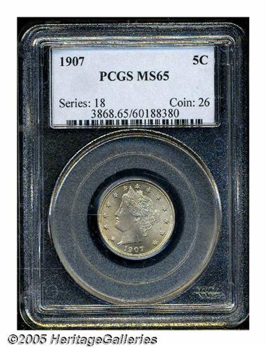 <B>1907<5C> MS65 PCGS.</B></I> Lustrous, light golden-violet surfaces and Gem eye appeal. Only some light scattered surface marks preclude an even higher grade.
