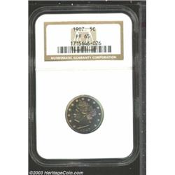<TABLE cellSpacing=0 cellPadding=0 width="100%" bgColor=#000000 border=0><TBODY><TR><TD width="100%"><TABLE cellSpacing=1 cellPadding=3 width="100%" border=0><TBODY><TR><TD width="100%" bgColor=#79735c><FONT face=arial color=#ffffff size=3><B>Description</B> </FONT></TD></TR><TR><TD width="100%" bgColor=#ffffff><FONT face=arial size=2><B>1907 5C PR65 NGC.</B></I> Original turquoise-blue, rose, and amber iridescence covers the well struck, seemingly contact-free surfaces. A shimmering Gem proof, with outstanding eye appeal. </FONT></TD></TR></TBODY></TABLE></TD></TR></TBODY></TABLE><BR><A name=PricesRealized></A><TABLE cellSpacing=0 cellPadding=0 width="100%" bgColor=#000000 border=0><TBODY><TR><TD width="100%"><TABLE cellSpacing=1 cellPadding=3 width="100%" border=0><TBODY><TR><TD width="100%" bgColor=#79735c><A name=PR><FONT face=arial color=#ffffff size=3><B>Previous Prices from Heritage Auctions</B> </FONT></A></TD></TR><TR><TD bgColor=#f6f6ed><TABLE cellSpacing=0 cellPadding=0 width="100%" border=1><TBODY><TR><TD align=middle width="33%"><B>Date</B></TD><TD align=middle width="33%"><B>Service</B></TD><TD align=middle width="33%"><B>Price</B></TD></TR><TR bgColor=whitesmoke><TD width="33%"><B>01/11/2003</B></TD><TD width="33%">PCGS</TD><TD width="33%">$460.00</TD></TR><TR bgColor=whitesmoke><TD width="33%"><B>07/16/2002</B></TD><TD width="33%">PCGS</TD><TD width="33%">$494.50</TD></TR><TR bgColor=whitesmoke><TD width="33%"><B>02/23/2002</B></TD><TD width="33%">PCGS</TD><TD width="33%">$414.00</TD></TR><TR bgColor=whitesmoke><TD width="33%"><B>12/11/2001</B></TD><TD width="33%">PCGS</TD><TD width="33%">$440.00</TD></TR><TR bgColor=whitesmoke><TD width="33%"><B>10/06/2001</B></TD><TD width="33%">PCGS</TD><TD width="33%">$414.00</TD></TR><TR bgColor=whitesmoke><TD width="33%"><B>08/07/2001</B></TD><TD width="33%">NGC</TD><TD width="33%">$420.00</TD></TR><TR bgColor=whitesmoke><TD width="33%"><B>04/28/2002</B></TD><TD width="33%">ANACS</TD><TD width="33%">$603.75</TD></TR><TR bgColor=whitesmoke><TD width="33%"><B>05/31/2001</B></TD><TD width="33%">PCGS</TD><TD width="33%">$414.00</TD></TR><TR bgColor=whitesmoke><TD width="33%"><B>04/05/2001</B></TD><TD width="33%">PCGS</TD><TD width="33%">$460.00</TD></TR><TR bgColor=whitesmoke><TD width="33%"><B>01/23/2001</B></TD><TD width="33%">PCGS</TD><TD width="33%">$475.00</TD></TR><TR bgColor=whitesmoke><TD width="33%"><B>01/04/1995</B></TD><TD width="33%">PCGS</TD><TD width="33%">$550.00</TD></TR><TR bgColor=whitesmoke><TD width="33%"><B>11/21/2000</B></TD><TD width="33%">PCGS</TD><TD width="33%">$430.00</TD></TR><TR bgColor=whitesmoke><TD width="33%"><B>03/01/2003</B></TD><TD width="33%">NGC</TD><TD width="33%">$632.50</TD></TR><TR bgColor=whitesmoke><TD width="33%"><B>03/01/2003</B></TD><TD width="33%">NGC</TD><TD width="33%">$483.00</TD></TR><TR bgColor=whitesmoke><TD width="33%"><B>03/01/2003</B></TD><TD width="33%">NGC</TD><TD width="33%">$379.50</TD></TR><TR bgColor=whitesmoke><TD width="33%"><B>02/22/1997</B></TD><TD width="33%">NGC</TD><TD width="33%">$330.00</TD></TR></TBODY></TABLE></TD></TR><TR><TD bgColor=#ffffff><FONT face=arial size=1 ?>PLEASE NOTE: All prices realized reflect the final hammer price PLUS the buyer's premium in auctions that charge a buyer's premium. Each item has a notation at the top of the listing indicating whether that lot included a buyer's premium. Example: A item that sells with a final hammer price of $100 and a 20% buyer's premium will display with a price realized of $120. All information listed is intended to be as accurate as possible, but errors are possible. Please use this guide carefully and inform us of any inaccuracies. </FONT></TD></TR></TBODY></TABLE></TD></TR></TBODY></TABLE><BR><TABLE cellSpacing=0 cellPadding=0 width="100%" bgColor=#000000 border=0><TBODY><TR><TD width="100%"><TABLE cellSpacing=1 cellPadding=3 width="100%" border=0><TBODY><TR><TD width="100%" bgColor=#79735c colSpan=6><FONT face=arial color=#ffffff size=3><B>Price Guide*</B> </FONT></TD></TR><TR bgColor=#f6f6ed><TD align=middle><B>Grade</B> </TD><TD align=middle><B>Coin World<BR>(Trends)</B> </TD><TD align=middle><B>Numismedia<BR>Retail</B> </TD><TD align=middle><B>Numismedia<BR>Wholesale</B> </TD><TD align=middle><B>Coin<BR>Universe</B> </TD><TD align=middle><B>Heritage<BR>Value Index</B> </TD></TR><TR bgColor=#ffffff><TD align=middle>64</TD><TD align=right>---</TD><TD align=right>$331.00</TD><TD align=right>$265.00</TD><TD align=right>$240.00</TD><TD align=right>$179.67</TD></TR><TR style="FONT-WEIGHT: bold" bgColor=#cccfdd><TD align=middle>65</TD><TD align=right>---</TD><TD align=right>$538.00</TD><TD align=right>$430.00</TD><TD align=right>$650.00</TD><TD align=right>$450.67</TD></TR><TR bgColor=#ffffff><TD align=middle>66</TD><TD align=right>---</TD><TD align=right>$960.00</TD><TD align=right>$740.00</TD><TD align=right>$1,450.00</TD><TD align=right>$910.00</TD></TR><TR bgColor=#ffffff><TD colSpan=6><FONT size=1>*All information listed is intended to be as accurate as possible, but errors are possible. No item may be returned or refused based on this information which is provided as a service to our customers. You should contact each pricing source directly to determine the accuracy of this information. </FONT></TD></TR></TBODY></TABLE></TD></TR></TBODY></TABLE><BR><TABLE cellSpacing=0 cellPadding=0 width="100%" bgColor=#000000 border=0><TBODY><TR><TD width="100%"><TABLE cellSpacing=1 cellPadding=3 width="100%" border=0><TBODY><TR><TD width="100%" bgColor=#79735c><FONT face=arial color=#ffffff size=3><B>Population Guide</B> </FONT></TD></TR><TR bgColor=#ffffff><TD align=middle><!-- Begin Output of Population Grid--><TABLE cellSpacing=0 cellPadding=0 width="100%" border=0><TBODY><TR><TD vAlign=center><TABLE cellSpacing=0 width="100%" border=1 cellsadding="3"><TBODY><TR><TD vAlign=center><TABLE cellSpacing=0 cellPadding=3 width="100%" border=1><TBODY><TR><TD vAlign=center align=middle bgColor=#f0f1e8 colSpan=2 <CENTER><FONT