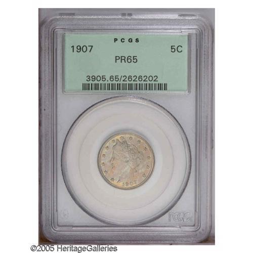 1907 5C PR65 PCGS. Swaths of delicate golden-orange pa 1907[5C] PR65 PCGS.