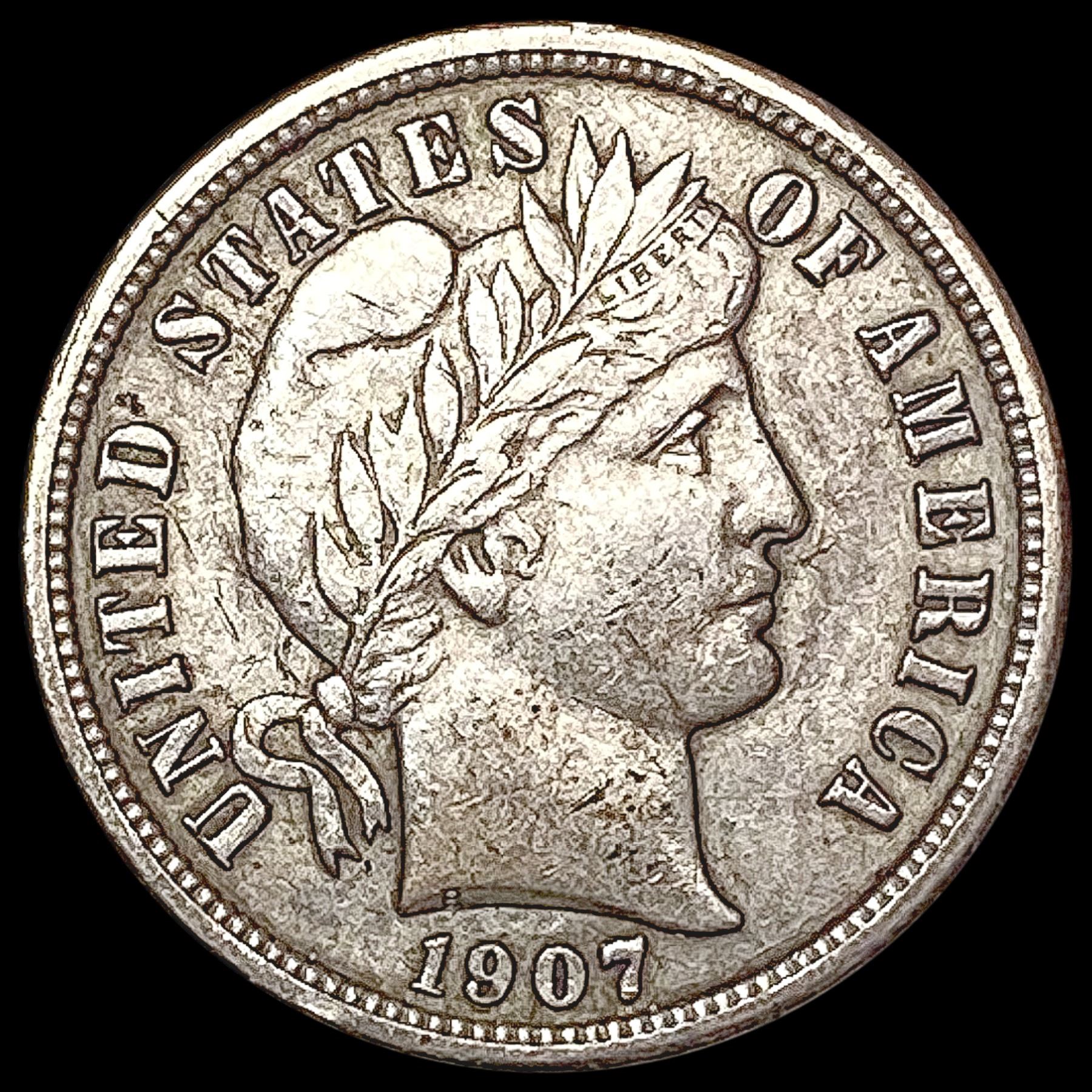 1907 Barber Dime CLOSELY UNCIRCULATED