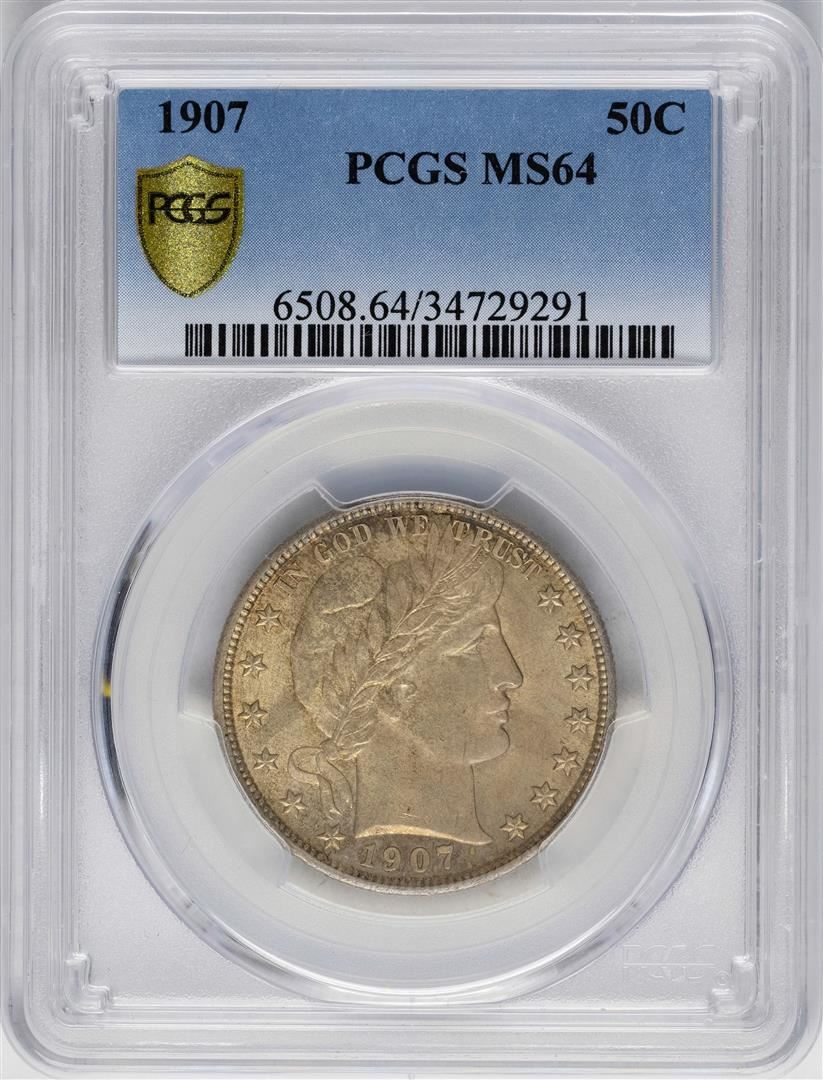 One 1907 Barber Half Dollar Coin PCGS MS64. PCGS Graded.