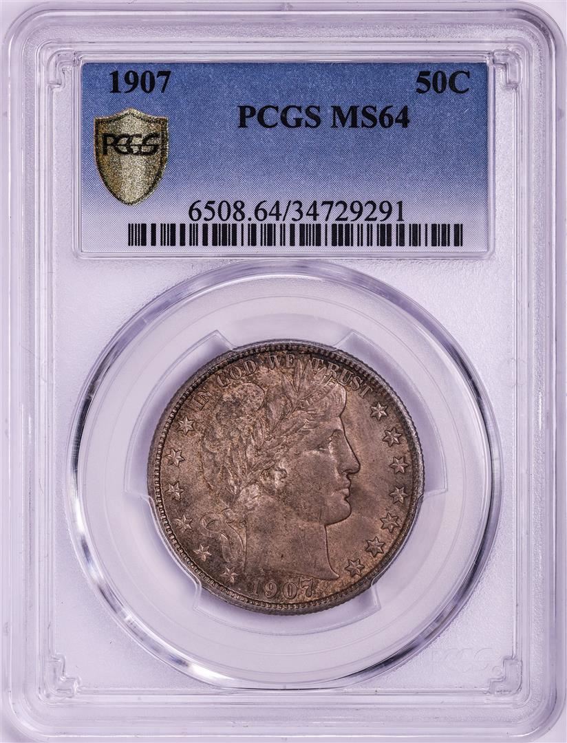 One 1907 Barber Half Dollar Coin PCGS MS64. PCGS Graded.