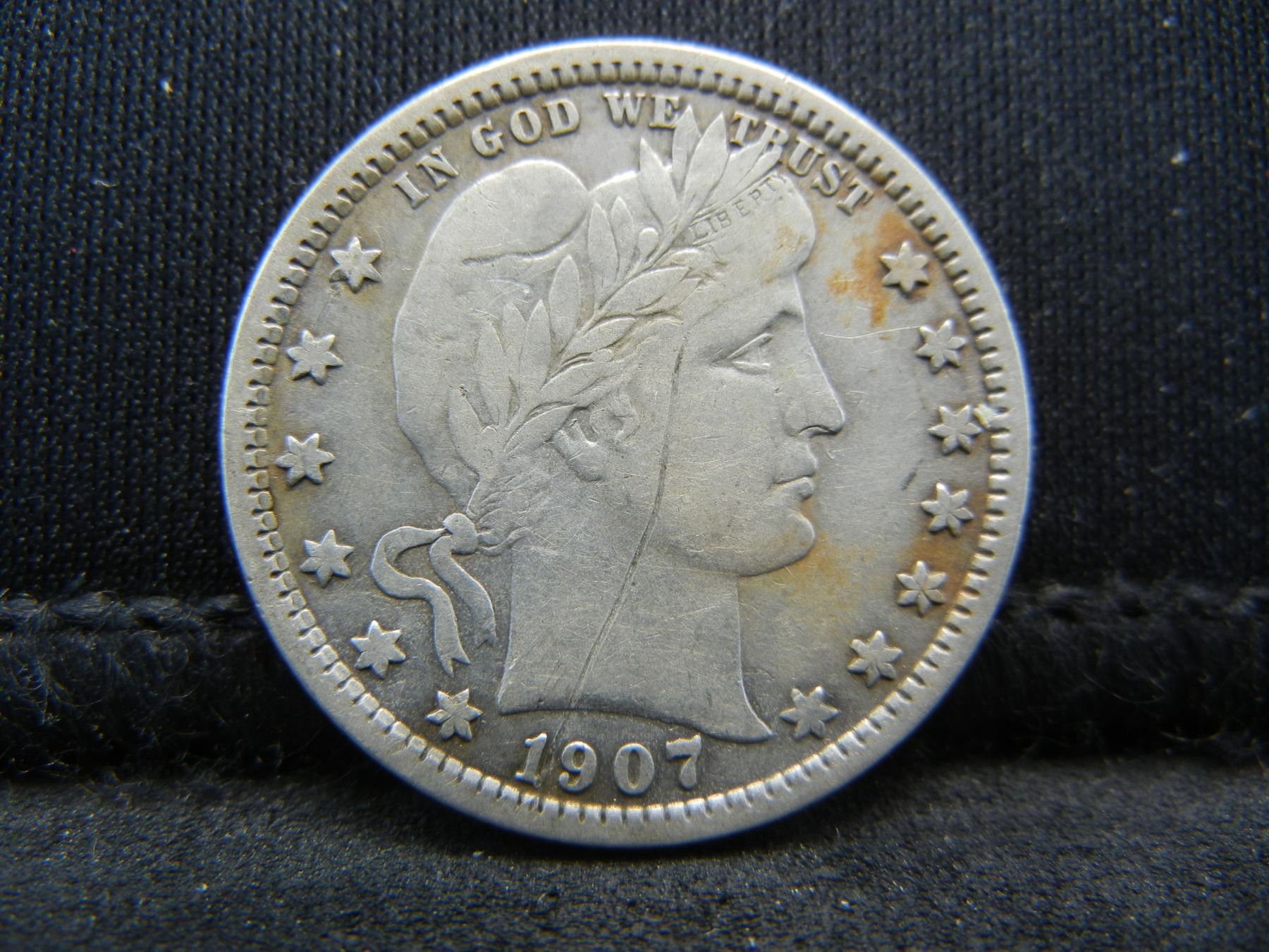 1907 Barber Quarter Strong Details Scratch Obverse