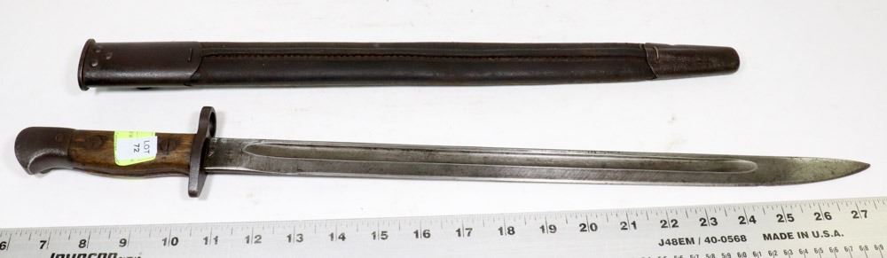WITH LEATHER SCABBARD. 17" BLADE. COLLECTIBLES.