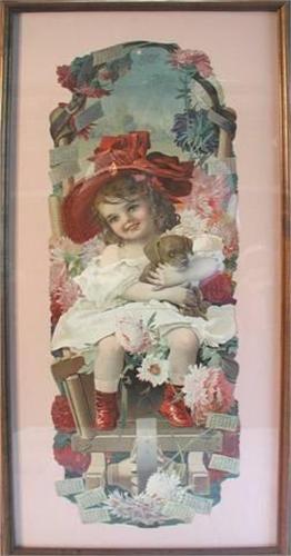1907 Calendar with Girl and Puppy, Die Cut in a Frame.